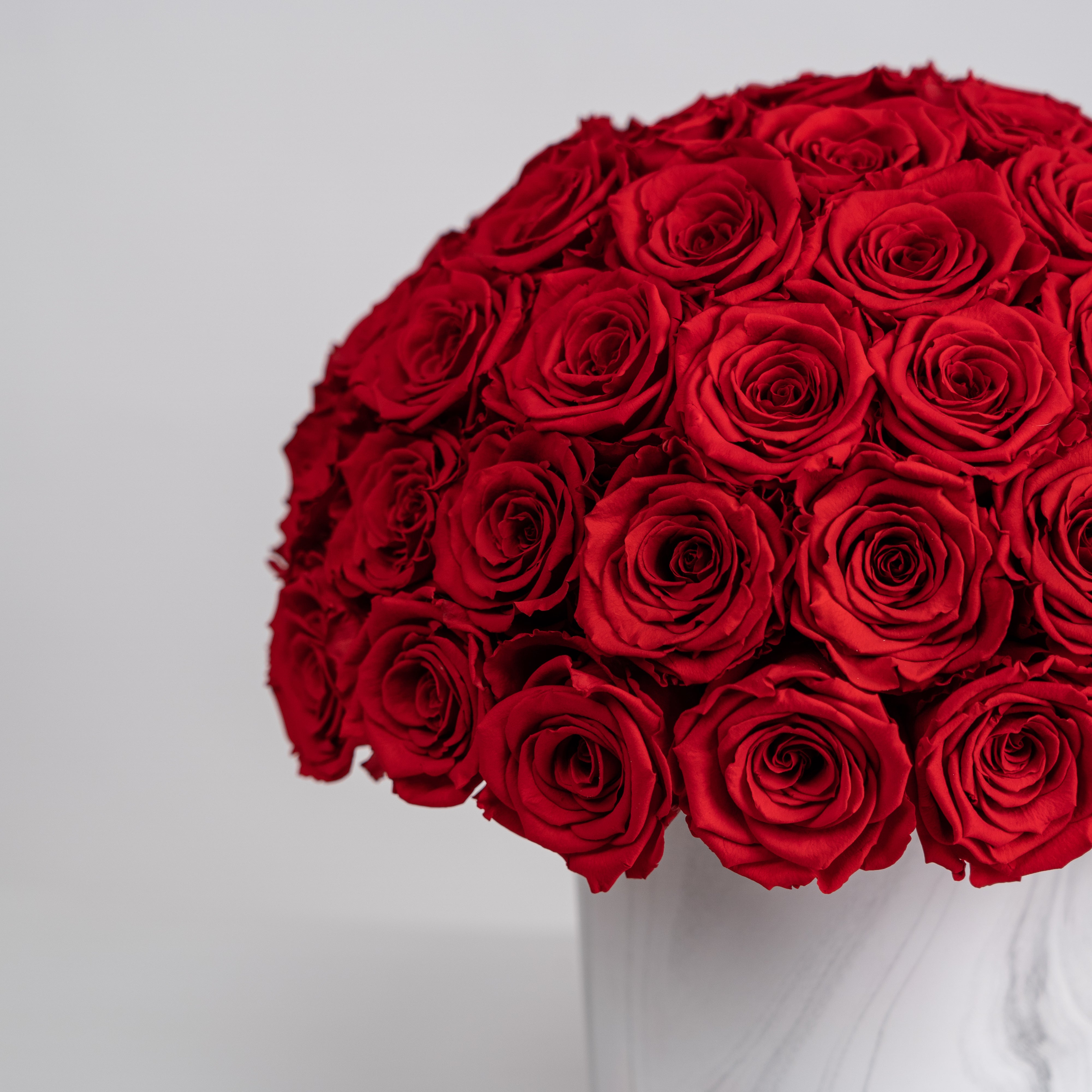 Our goal is to bring timeless beauty to your space all year long, so each Everlasting Flowers arrangement is guaranteed to last for at least a year. Our innovative preservation process will keep your roses looking fresh, bright, and soft to the touch for 3 to 5 years after they arrive at your door. In fact, we are so confident in our Everlasting Flowers that we will replace your arrangement free of charge if your flowers look wilted within a year after your purchase.
