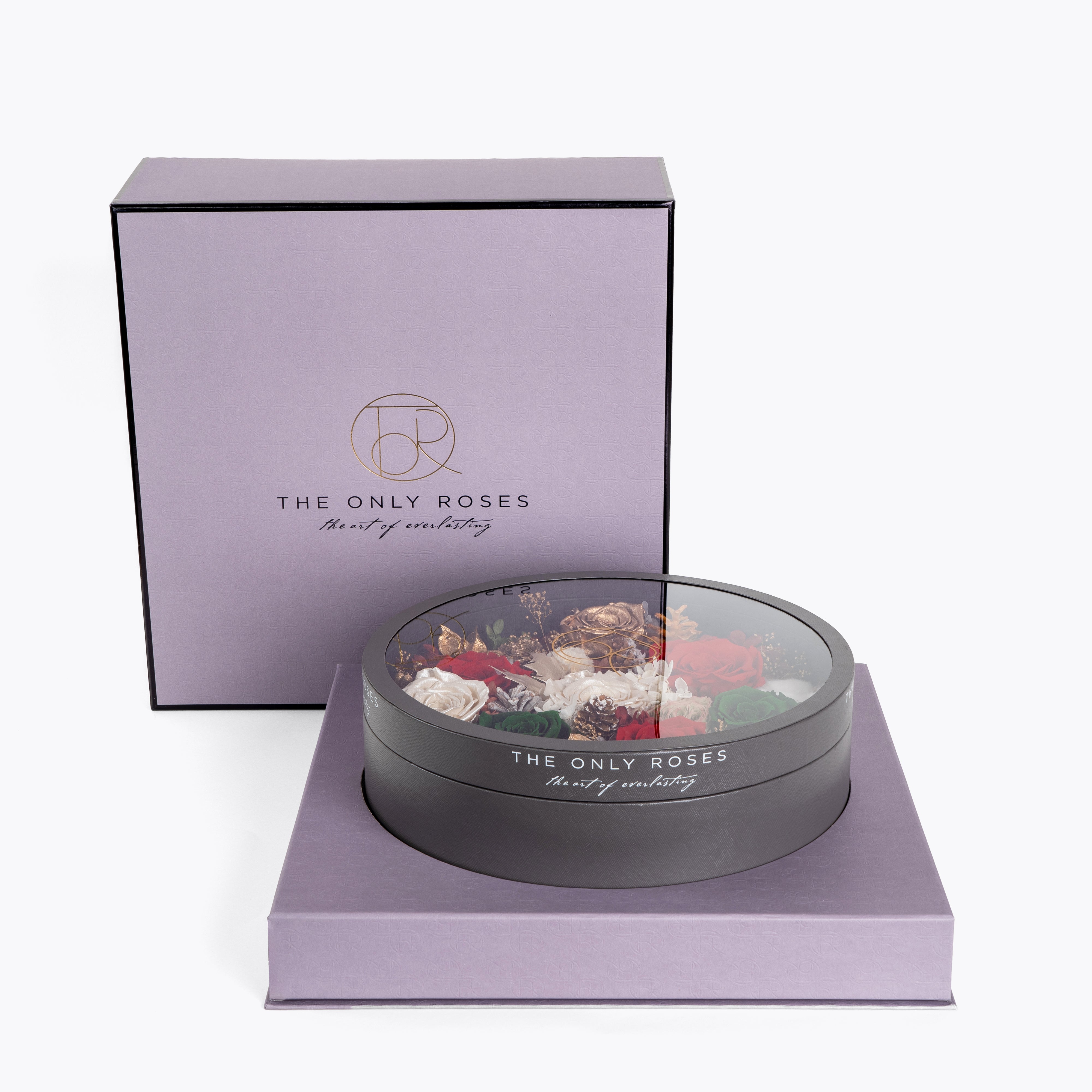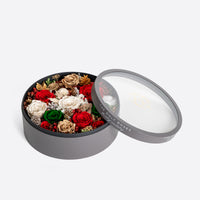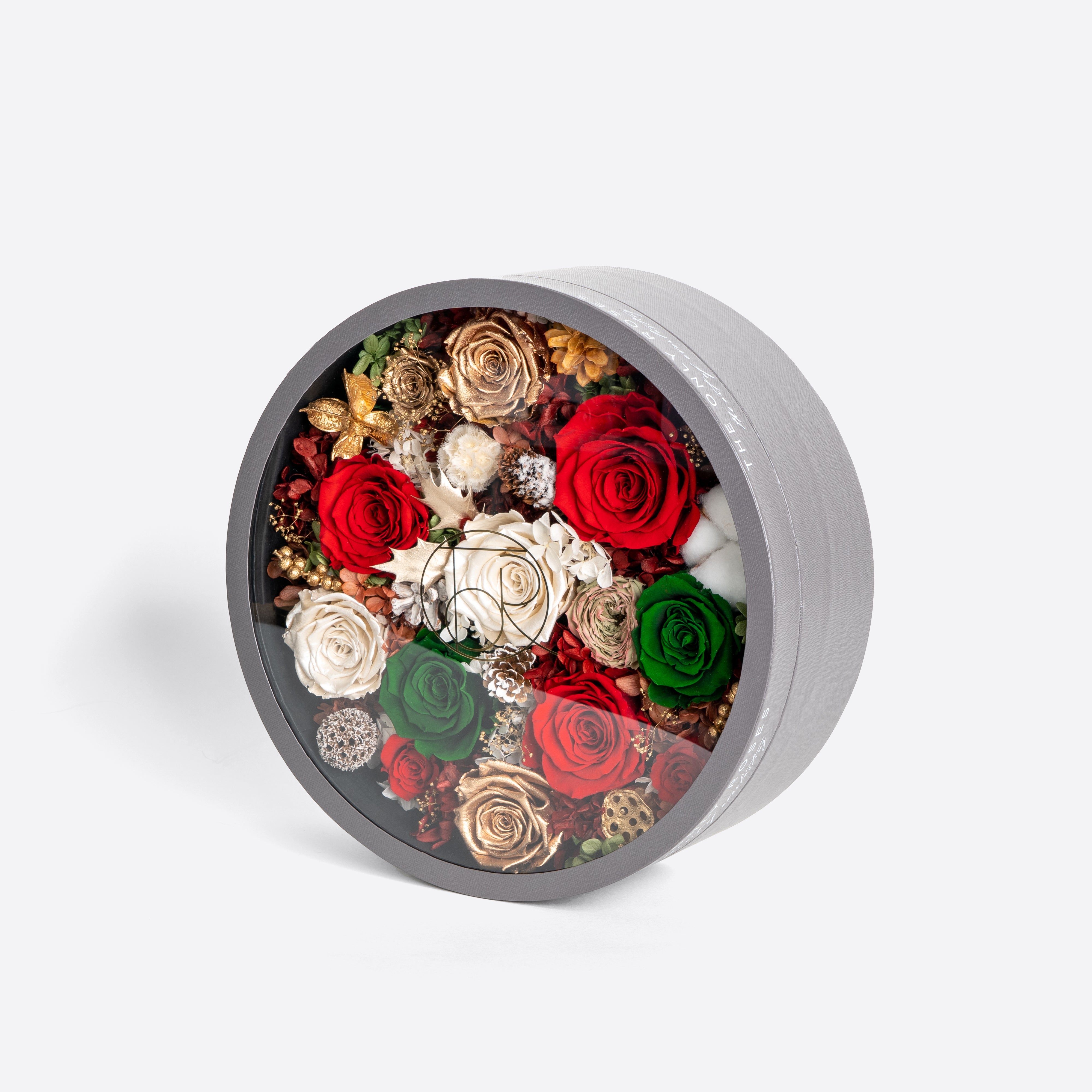 Gray Classic Large Round Shadow Box Mixed Floral Holiday Edition