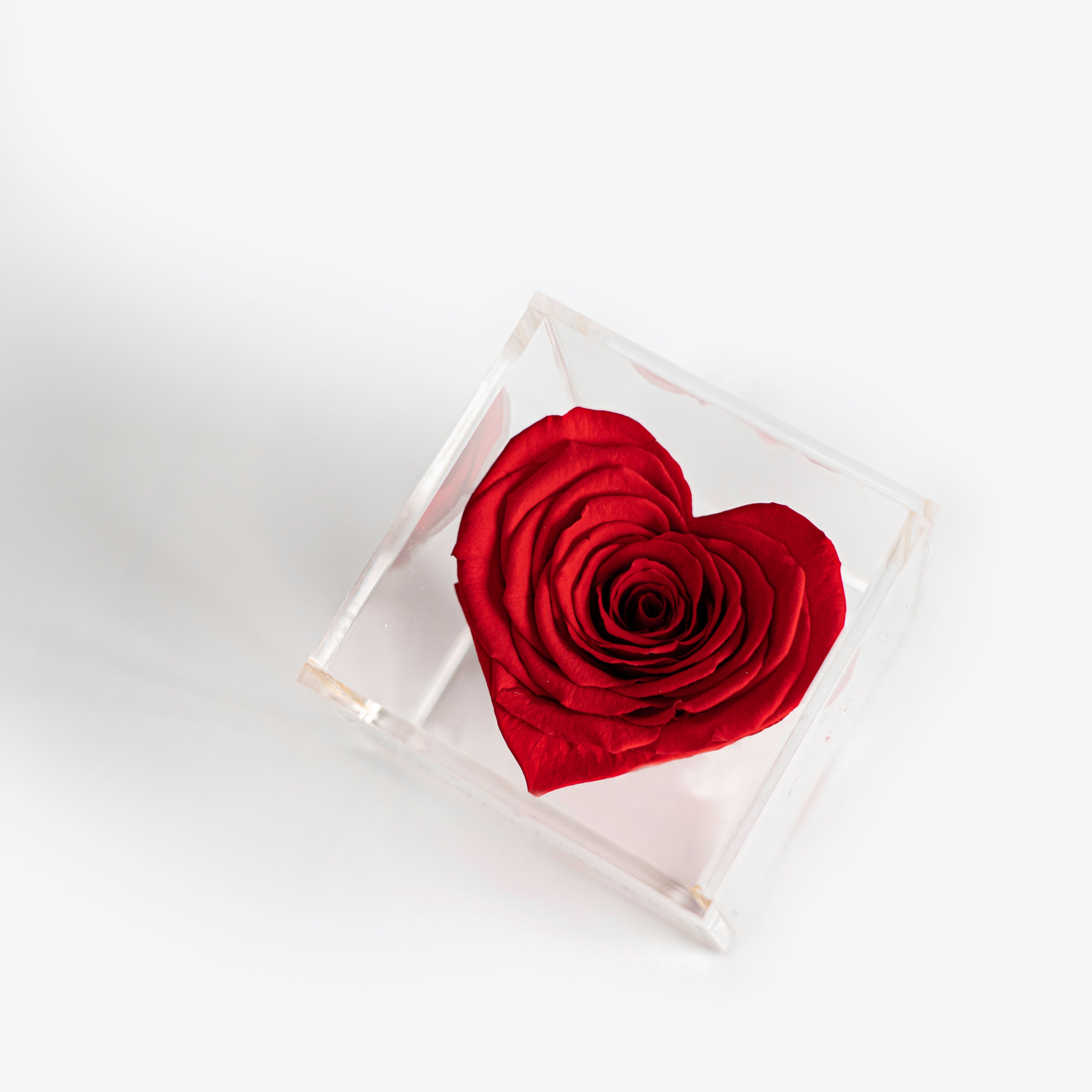 Our Petite Square Rose Acrylic Box shows off our Everlasting Rose in the most dramatic fashion — suspended in a see-through box that allows for a 360-degree view of the flower. With the rose so clearly and beautifully presented, you’ll never need to open the box, therefore preserving it for as long as possible. We like to think of these as sleeping beauties, encased in their own little castle.