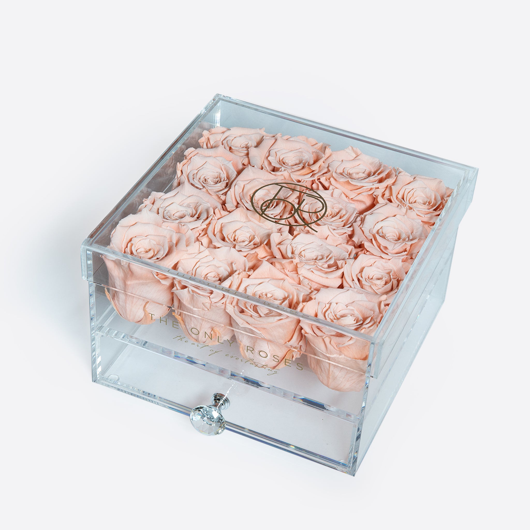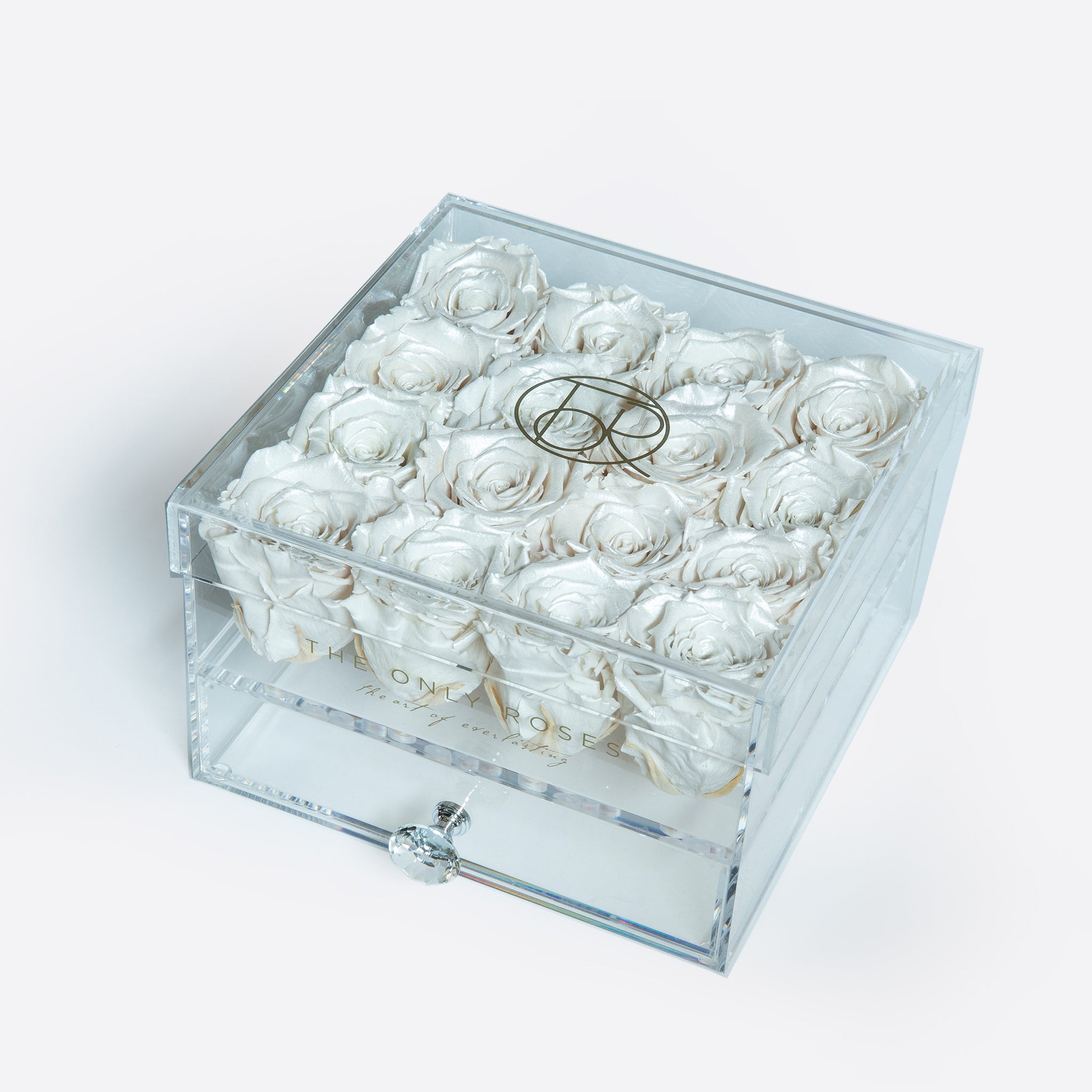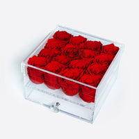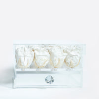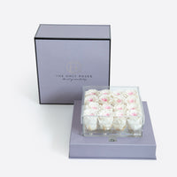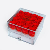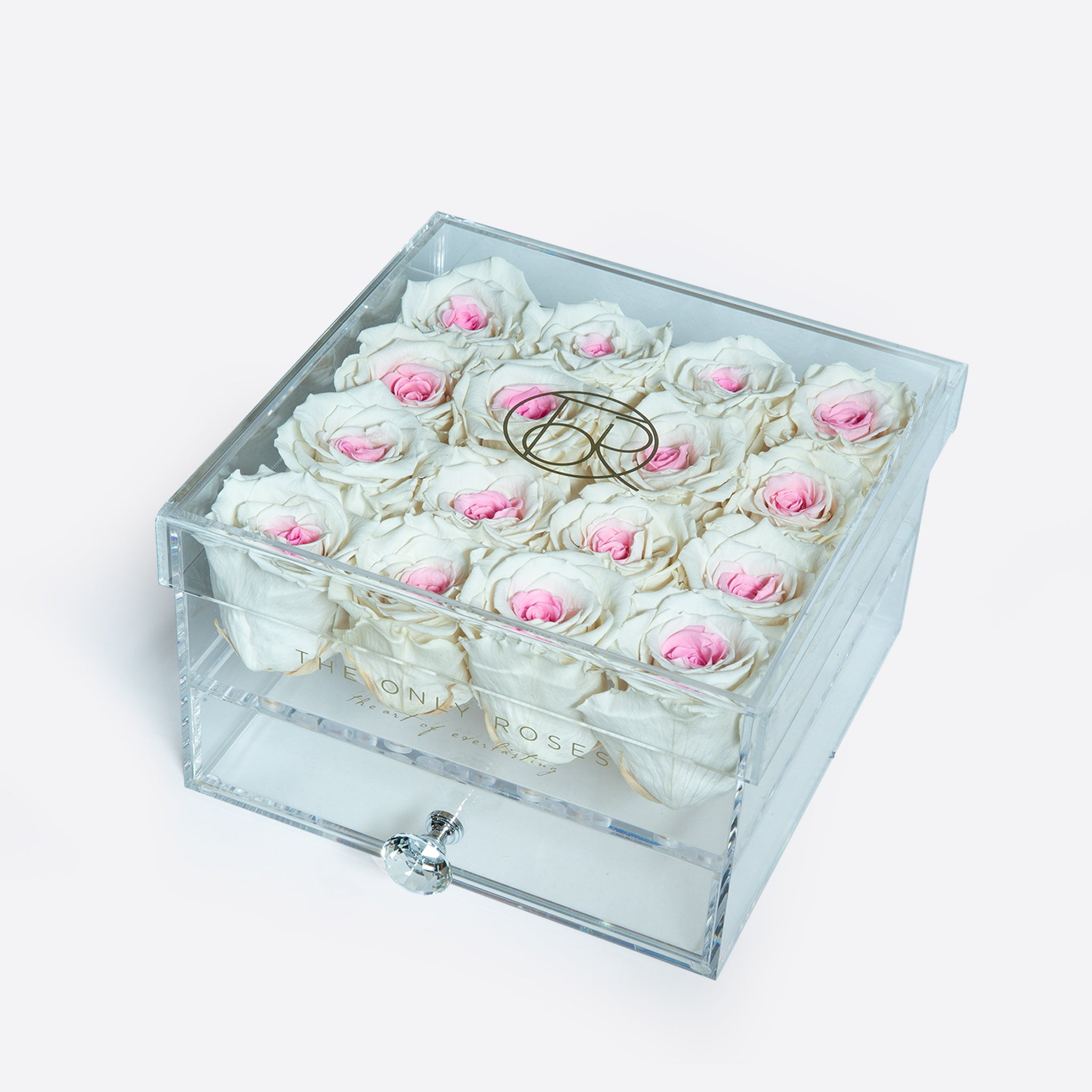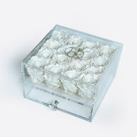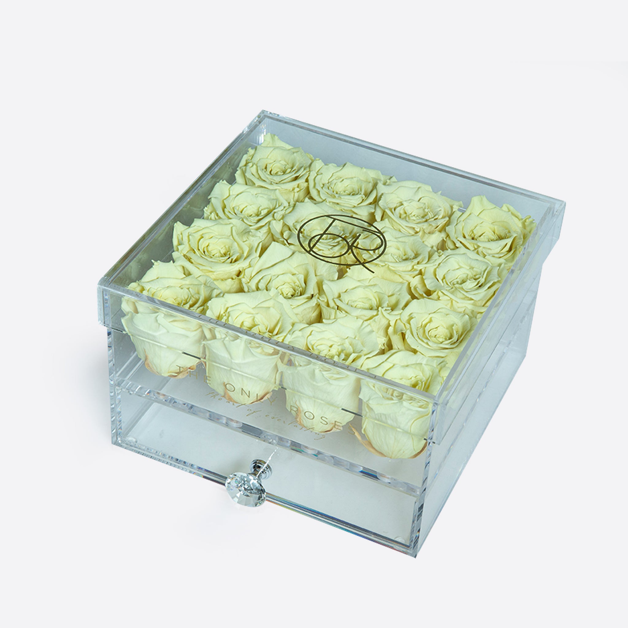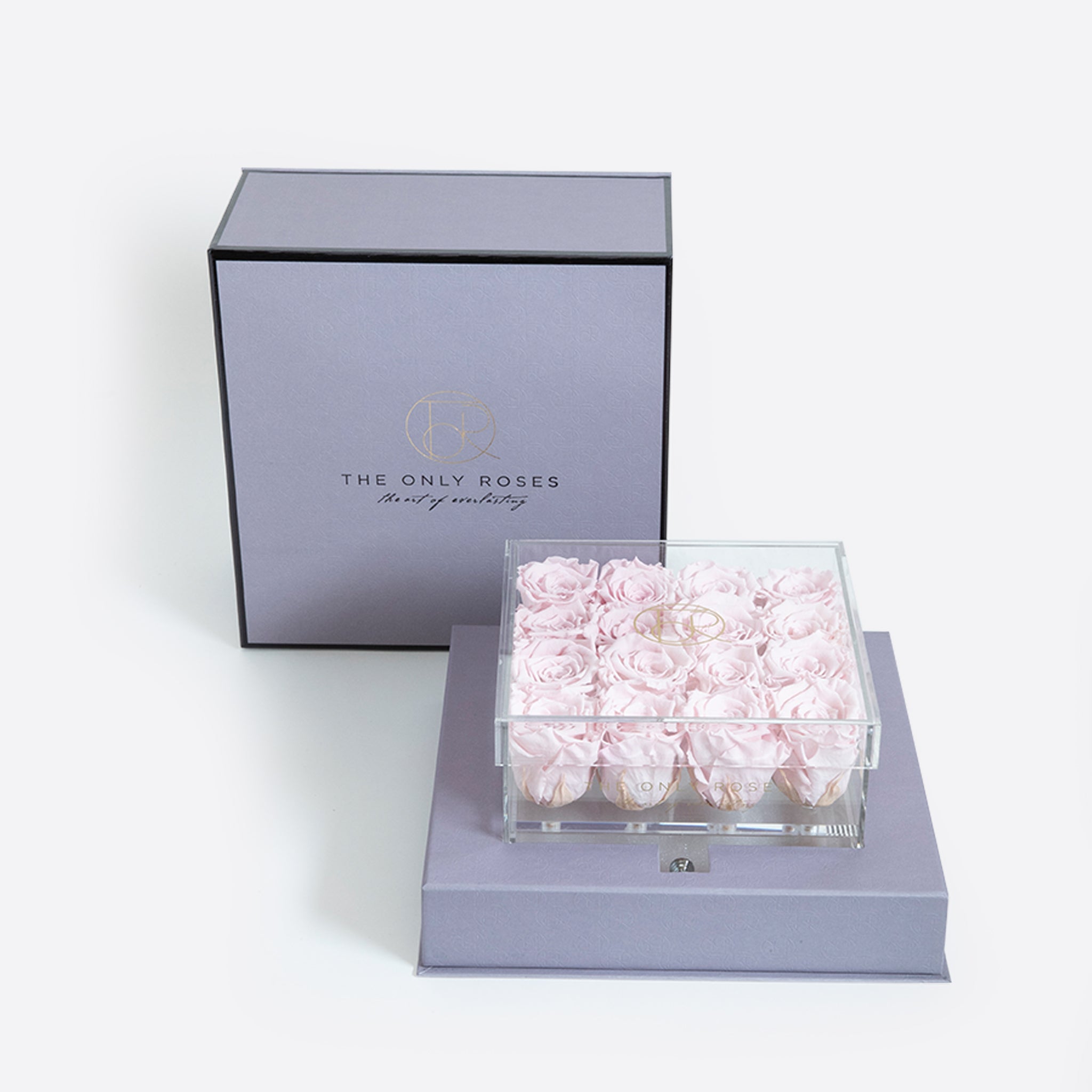 Our Medium Square Rose Acrylic Box shows off our preserved Everlasting Roses in the most dramatic fashion — suspended in a see-through box that allows for a 360-degree view of each perfectly picked flower. With the rose buds so clearly and beautifully presented, you’ll never need to open the box, therefore preserving them for as long as possible. We like to think of these as sleeping beauties, encased in their own little castle.