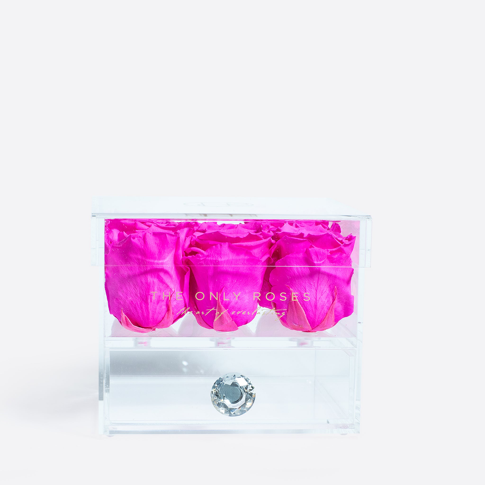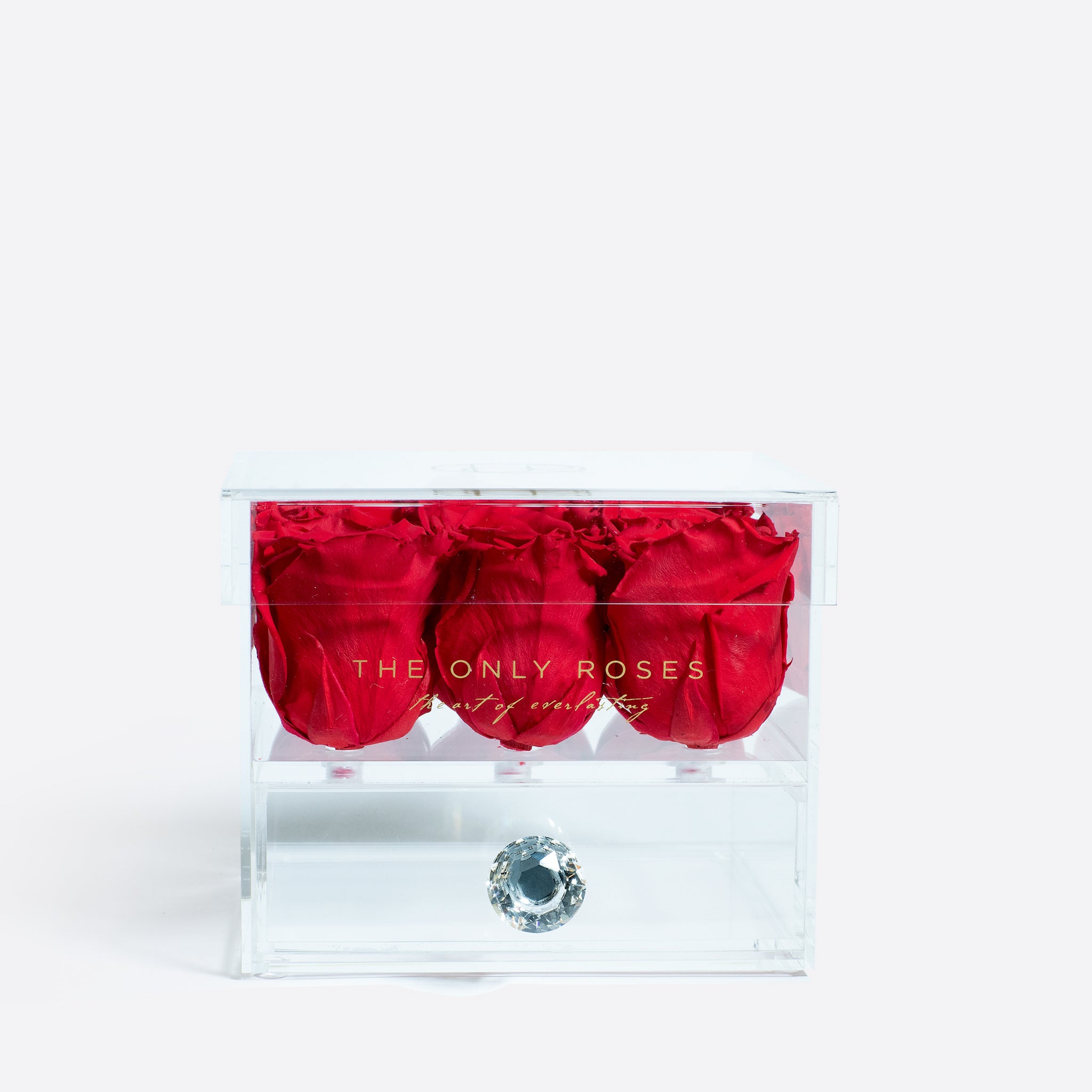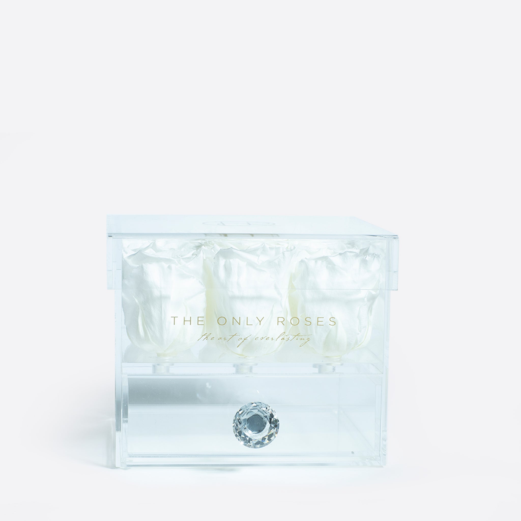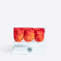 Our Small Square Rose Acrylic Box shows off our preserved Everlasting Roses in the most dramatic fashion — suspended in a see-through box that allows for a 360-degree view of each perfectly picked flower. With the rosebuds so clearly and beautifully presented, you’ll never need to open the box, therefore preserving them for as long as possible. We like to think of these as sleeping beauties, encased in their own little castle.